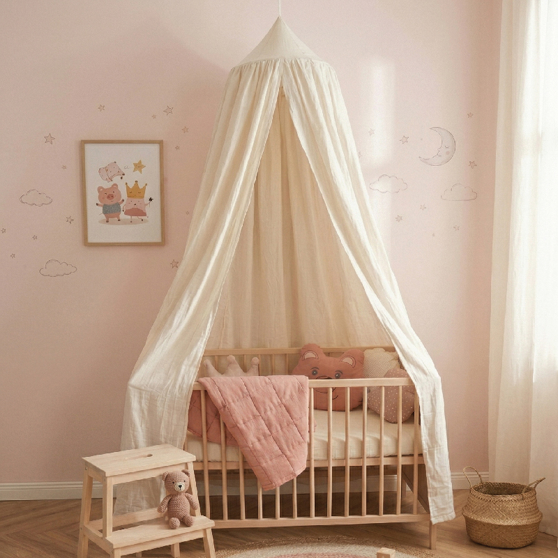 A soft, breathable canopy tent designed to create a cozy and comforting space for babies and toddlers. Crafted in natural tones with a minimal aesthetic, it transforms any crib or bed into a calm and nurturing environment.