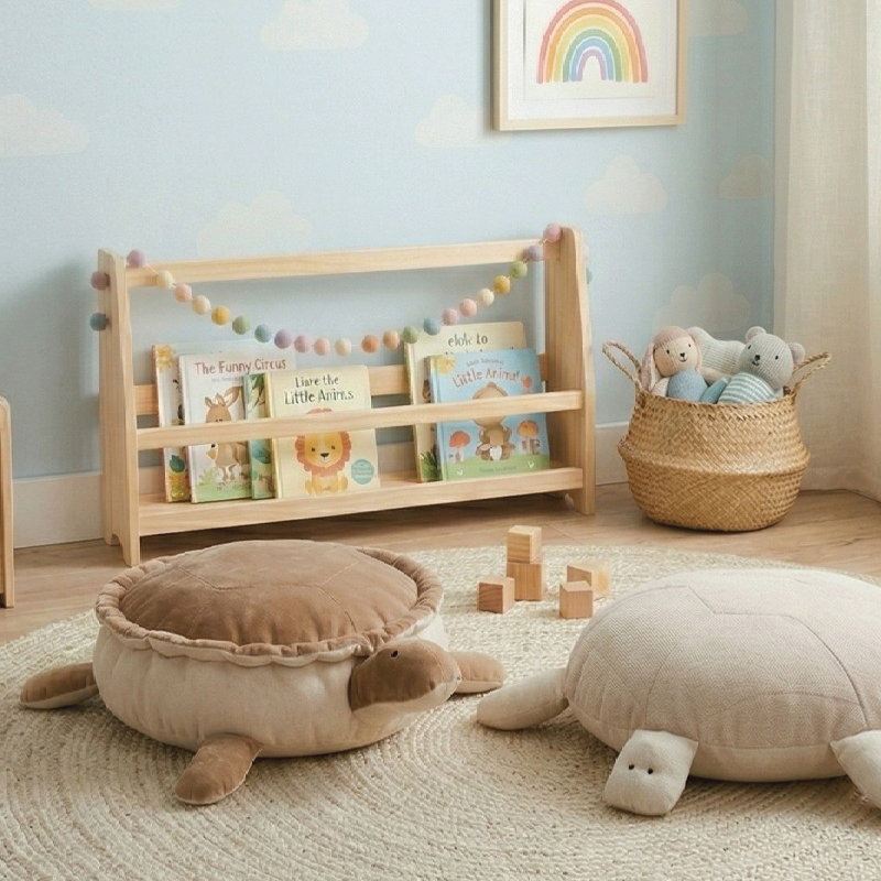 Soft, animal-inspired floor cushions designed to create a cosy and playful environment for children. Inspired by nature, these turtle-shaped cushions add warmth, comfort, and character to modern nursery and play spaces.