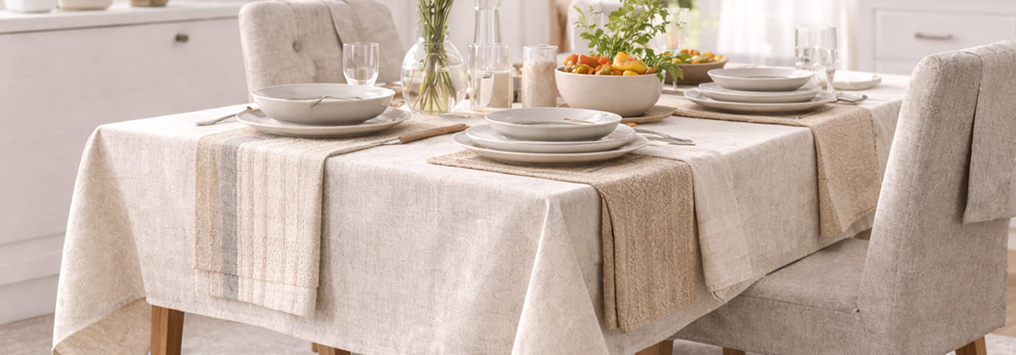 Graceful printed tablecloths designed to transform dining spaces with rich patterns and soft textures. A perfect blend of functionality and decorative elegance for modern interiors.