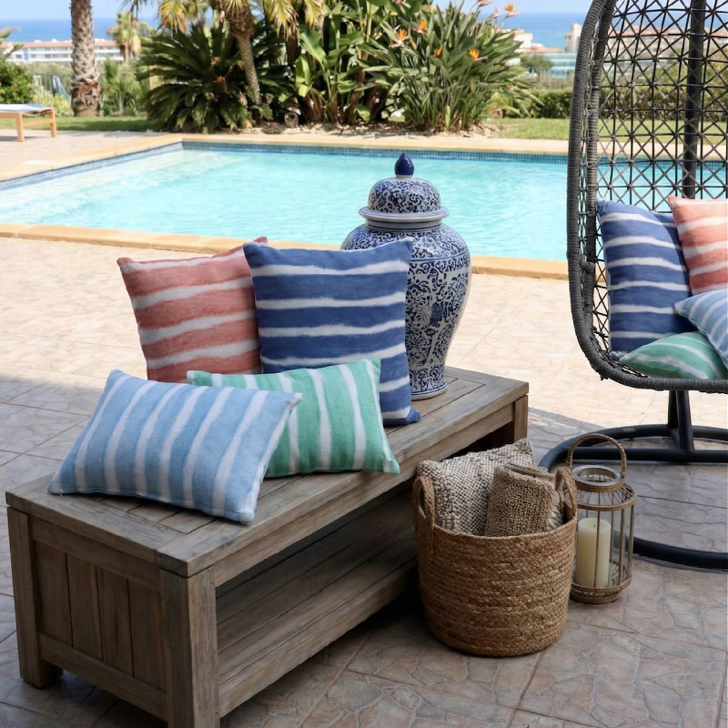 Lightweight, striped textiles inspired by coastal living, designed for effortless comfort and style. Perfect for beach days, outdoor lounging, and relaxed lifestyle settings.