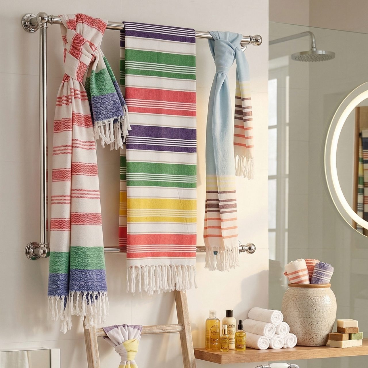 A lightweight, quick-drying peshtemal towel designed with vibrant stripe patterns and soft woven texture. Perfect for both bath and beach use, combining functionality with a stylish, contemporary look.